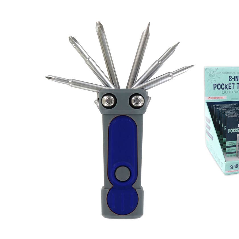 The handiest little tool known to man! The 8-in-1 Pocket Toolkit features six popular screwdrivers, one high-intensity LED flashlight and one LED tasklight. Great for around-the-house tasks, quick repairs & emergencies. Keep one in the kitchen, the office and the car. Makes a great practical gift! -Six screwdrivers -Two LED lights: flashlight & tasklight