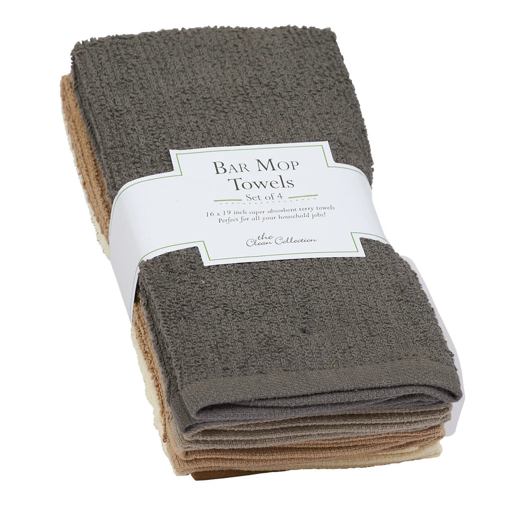 Neutral Bar Mop Towels Set of 4. Perfect for the everyday kitchen! Each kitchen towel measures 16 x 19".