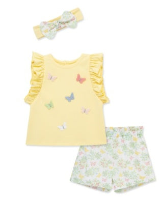 YELLOW TOP WITH ASSORTED BUTTERFLIES APPLIQUED TO MATCH SHORTS