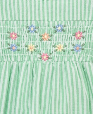 GREEN/WHITE STRIPE WITH FLORAL SMOCKING