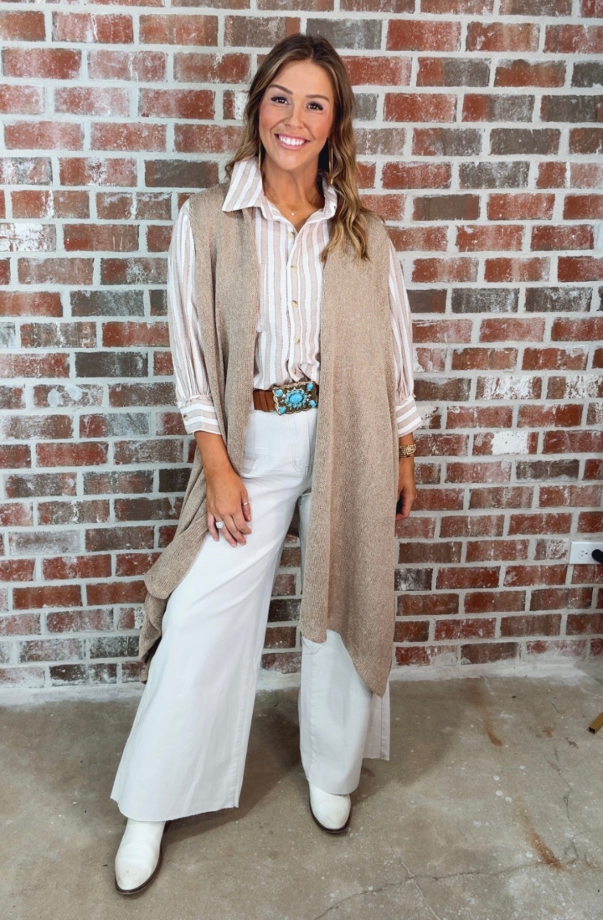 Layer up in style with this cozy sleeveless vest, crafted from a soft, sweater like knit material. Perfect for transitional weather, it adds the right amount of warmth without the bulk.