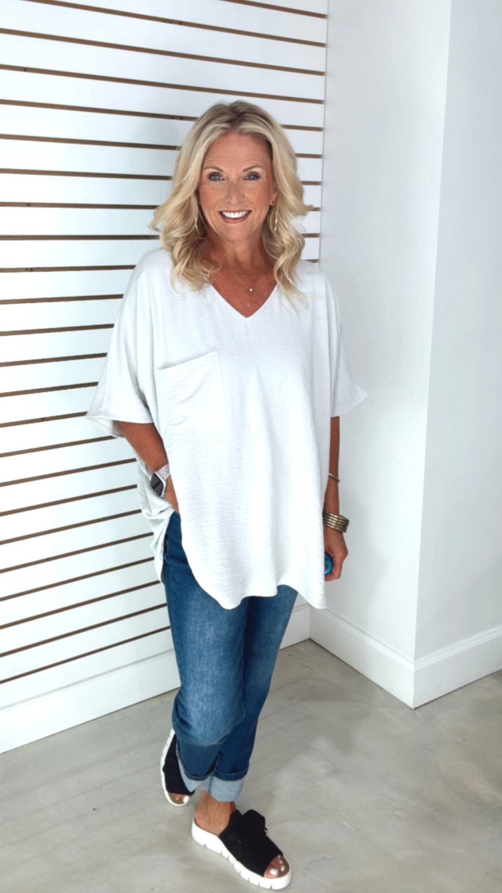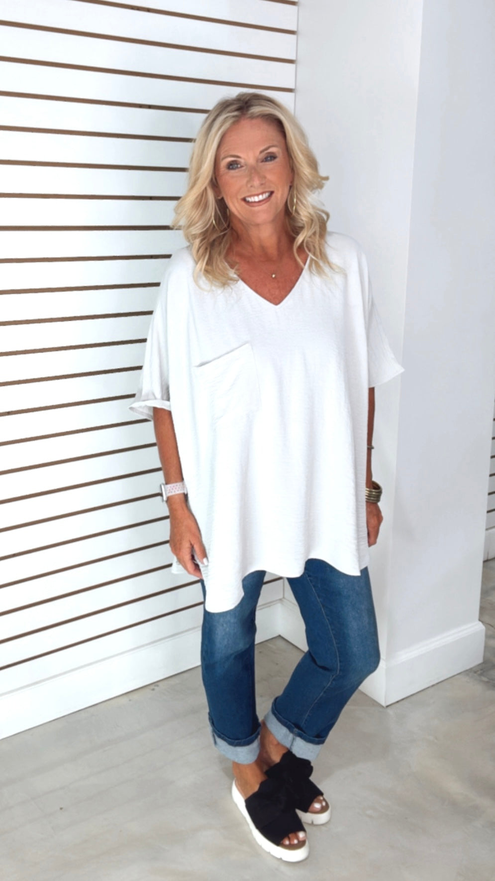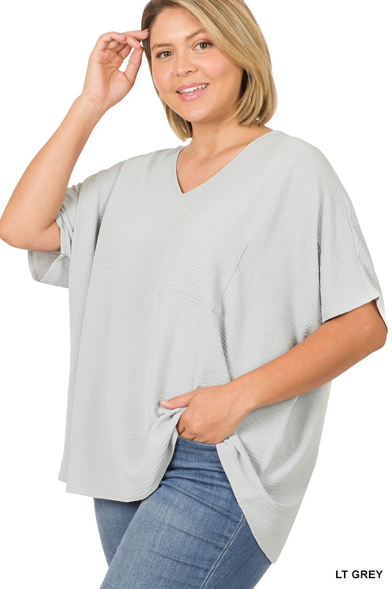 WOVEN AIRFLOW V-NECK DOLMAN SHORT SLEEVE TOP