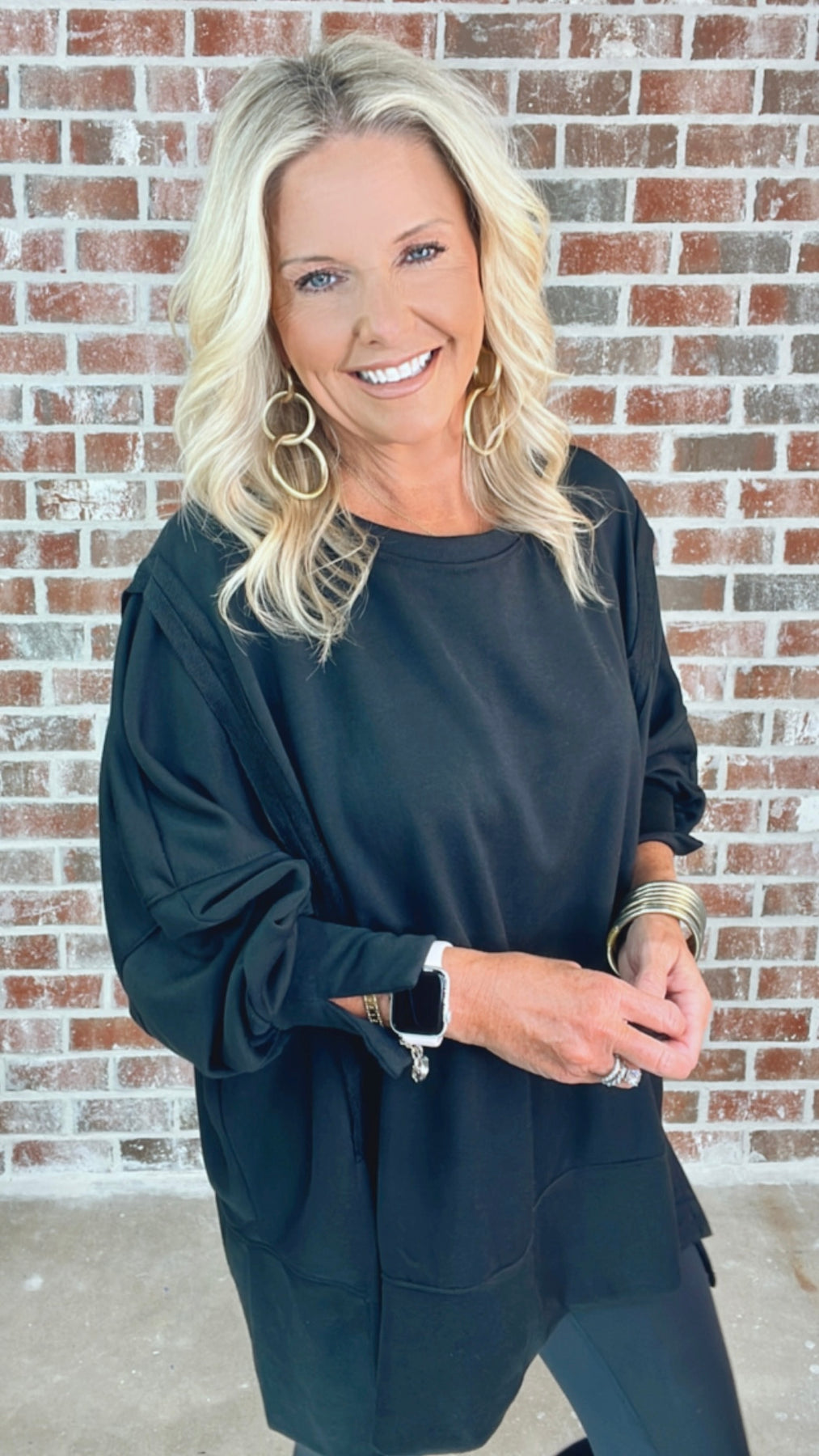 Introducing an effortlessly stylish oversized long-sleeve tee, perfect for those seeking both comfort and style. The distinctively large and draped silhouette ensures a relaxed fit, while the highlighted raglan sleeves with unique extended cuffs add a touch of modern elegance, making it a stand-out choice for casual outings.