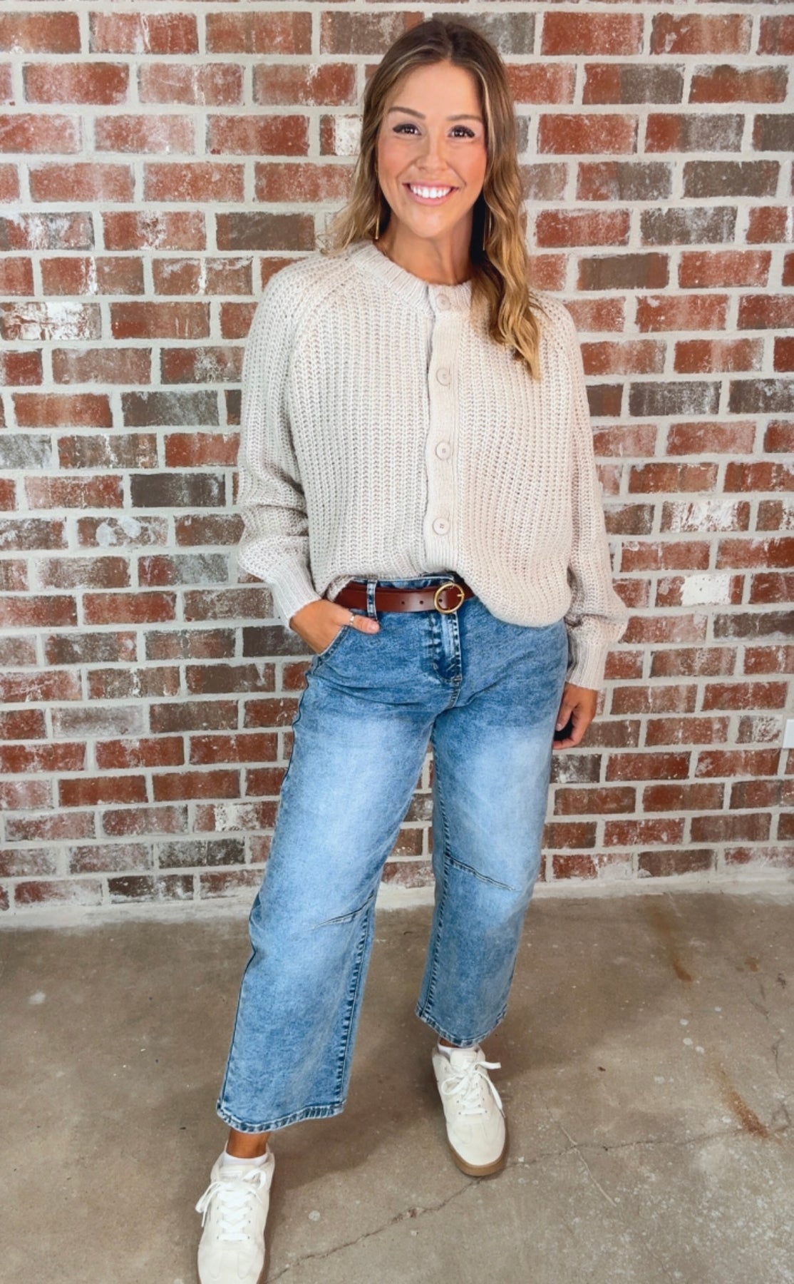 This sweater features a comfortable, relaxed fit with a classic ribbed knit pattern. Highlighted by front buttons, it brings a versatile update to any wardrobe. Perfect for layering or solo wear, pair it with denim or layer over collared shirts for a preppy touch.