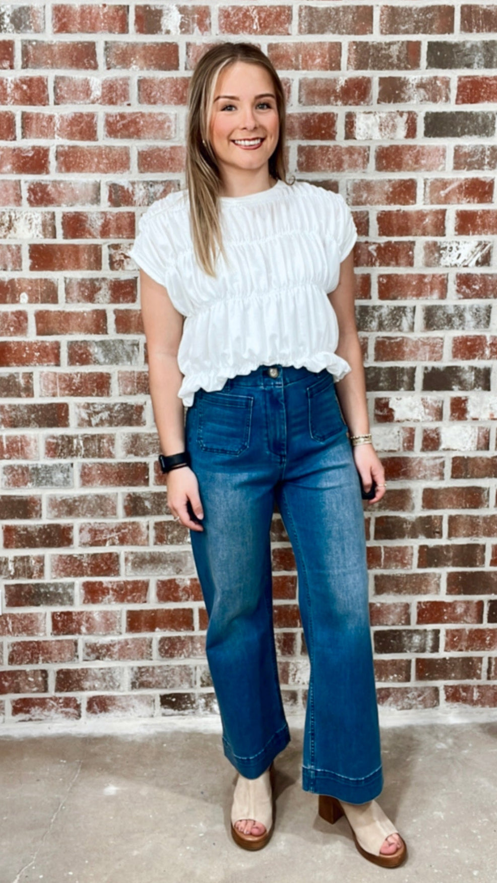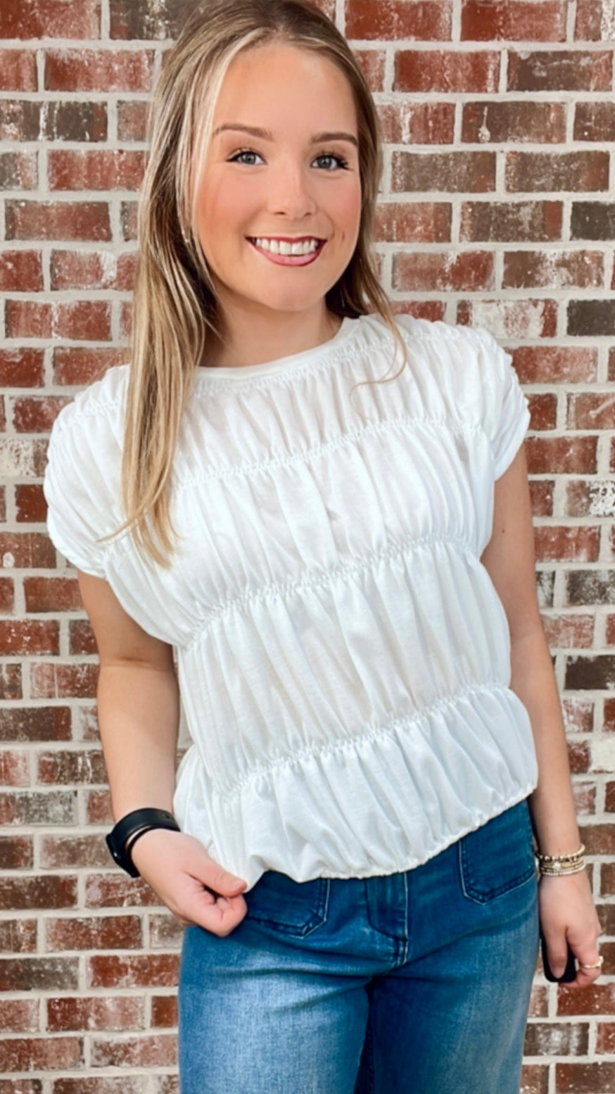 SMOCKED BUBBLE TOP - WHITE