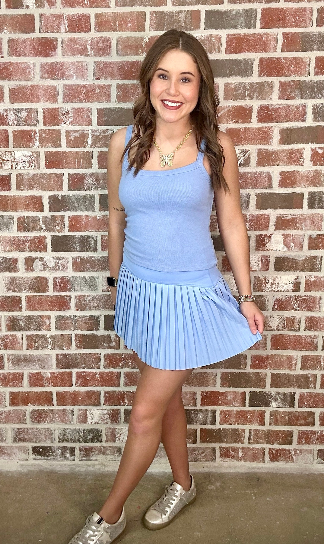 This fitted tank features a shelf bra, spaghetti straps, and a rib blend fabric. Designed to go with any of our activewear styles, it’s as effortless as it is cute.