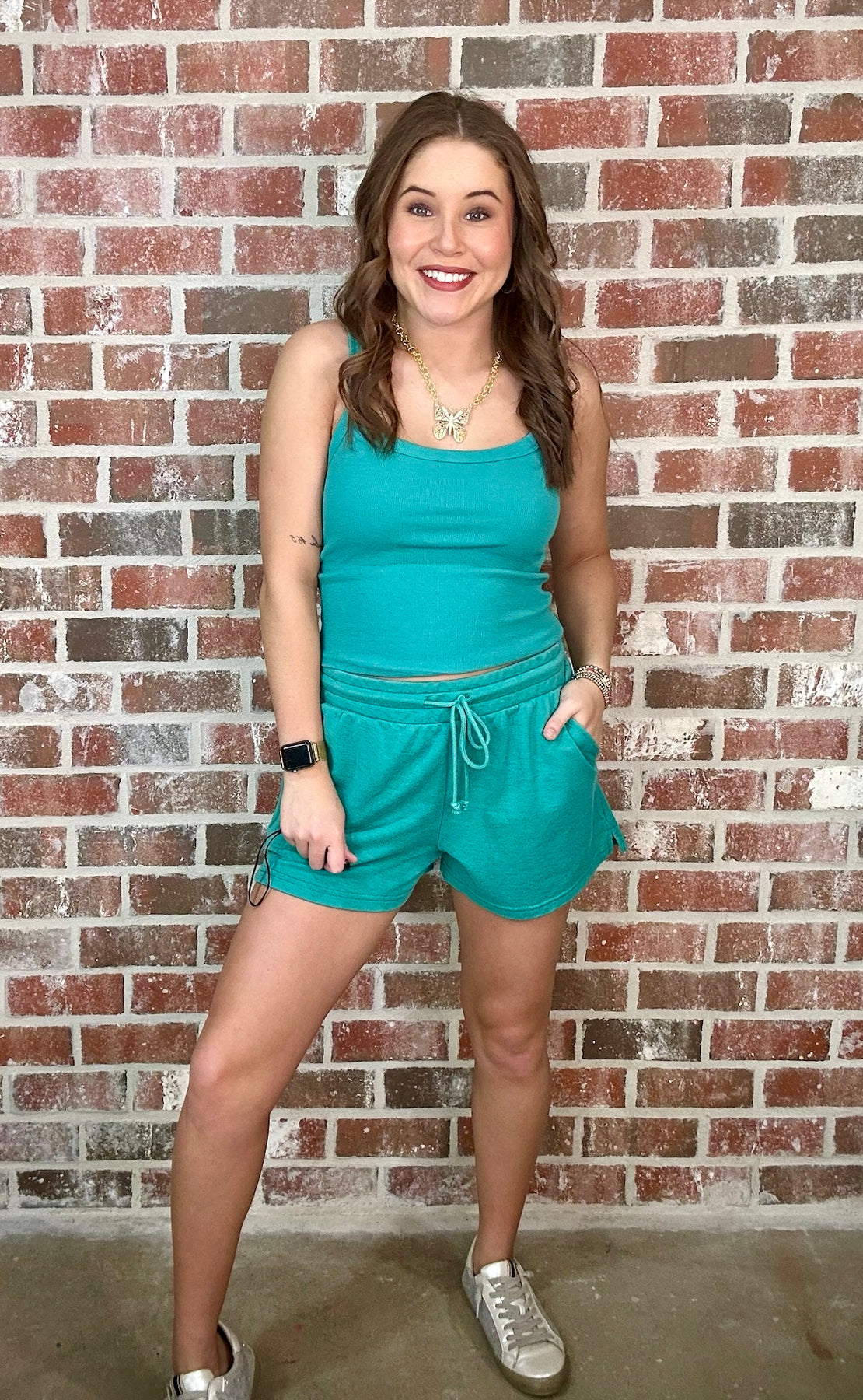 This fitted tank features a shelf bra, spaghetti straps, and a rib blend fabric. Designed to go with any of our activewear styles, it’s as effortless as it is cute.