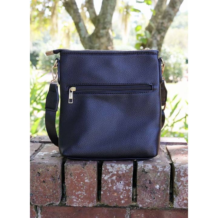 This crossbody is a perfect go to for travel or everyday wear! It has a slim body style that can hold and organize so many items! There is a large front magnetic pocket that features the Caroline Hill logo as well as a zippered pocket on the back of the bag. The top zipper closure leads to the interior of the bag where there is one open pocket and one zippered pocket. It has a comfortable nylon strap that is adjustable and removable as well. Dimensions: * 9" tall by 8.5" wide