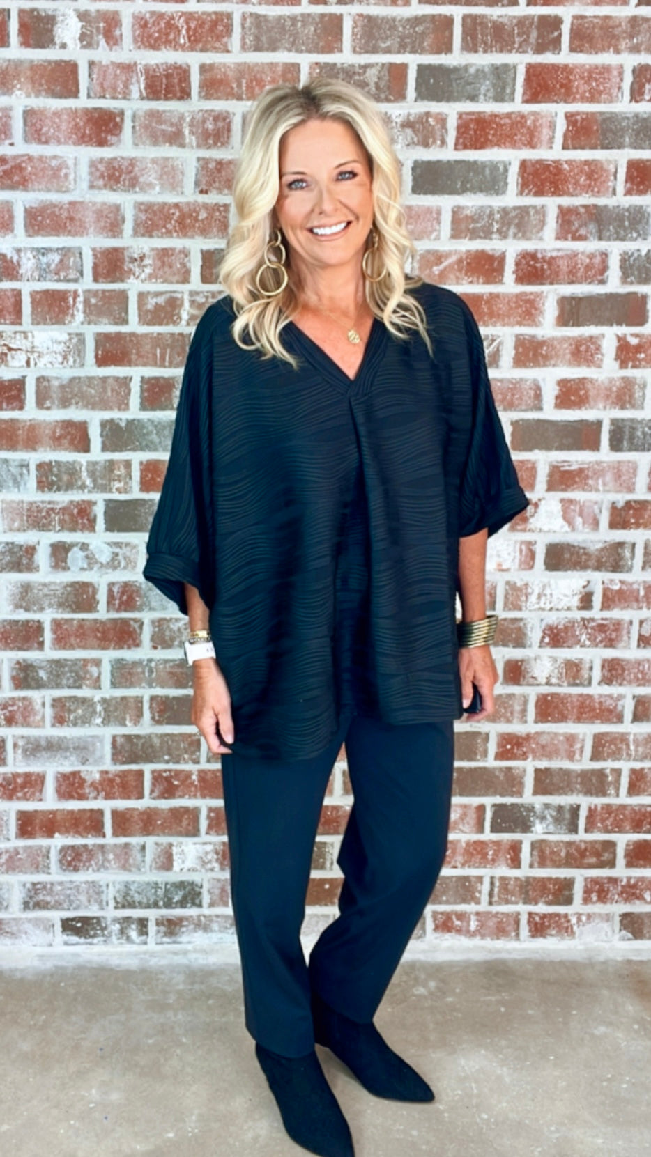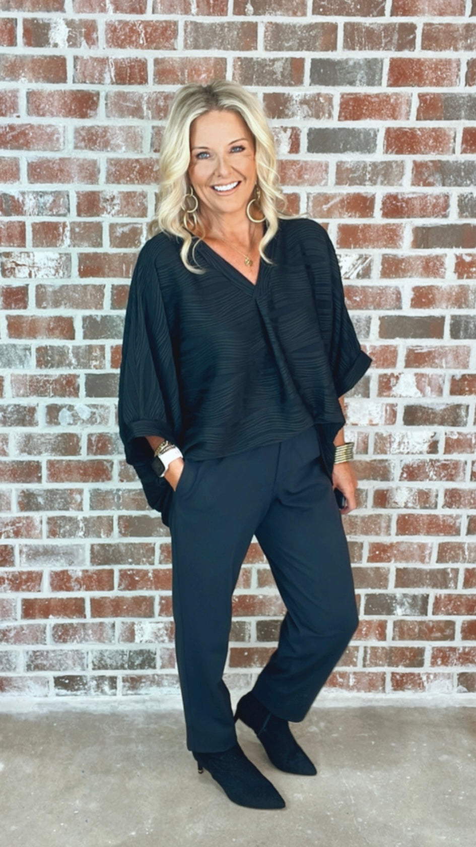 ROUND NECK TOP W/ DOUBLE RUFFLE SLEEVES IN BLACK