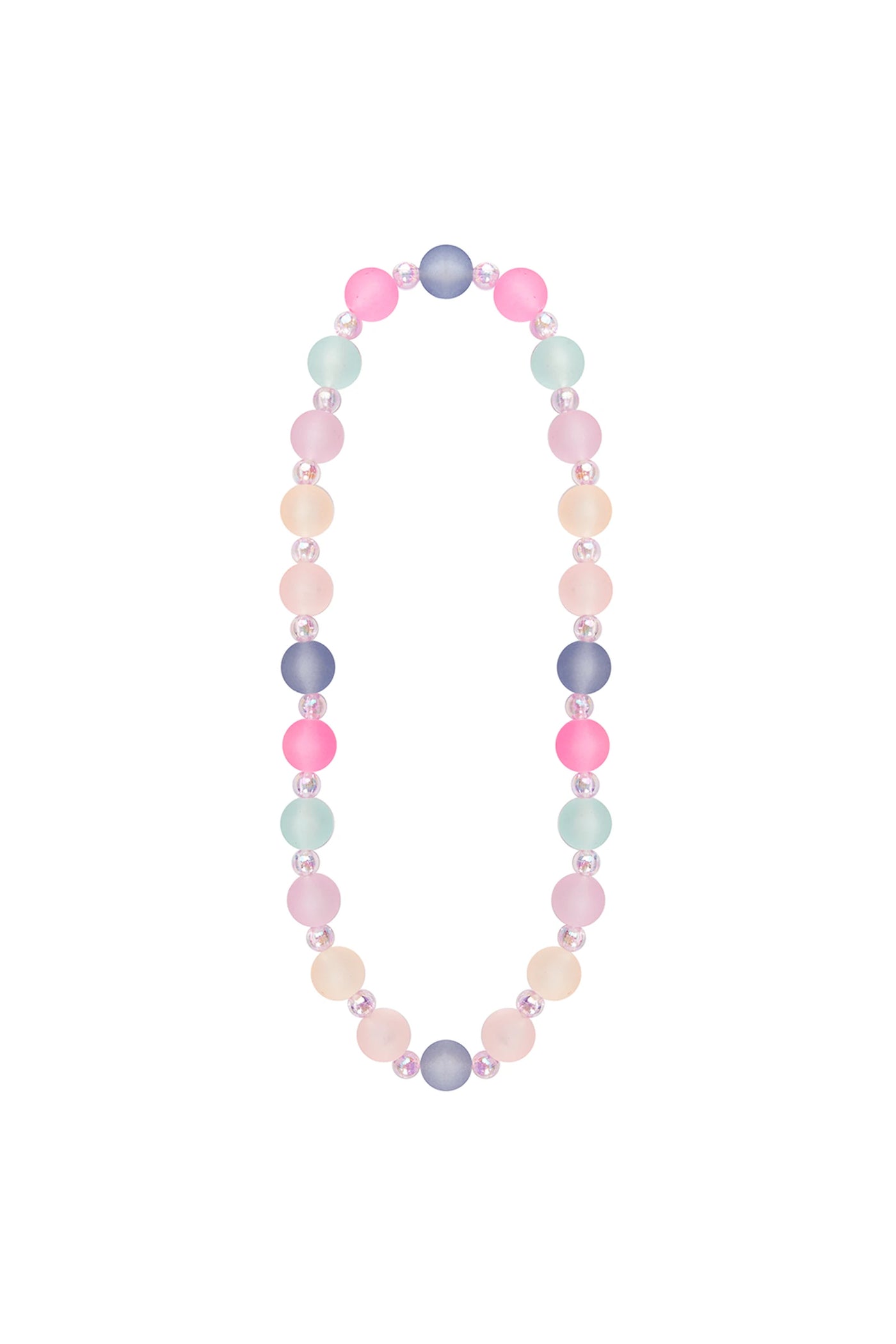 This bumpy bead bracelet is made with blue, pink, and purple frosted beads, alternating between smaller clear beads. Be sure to check out its matching bracelet