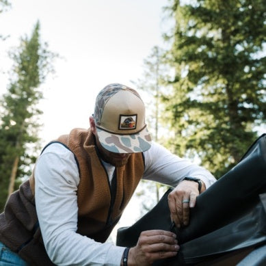 Low Profile 5 Panel Snap Back Cap with Rope Wood Duck Stamp Patch Mesh Backing