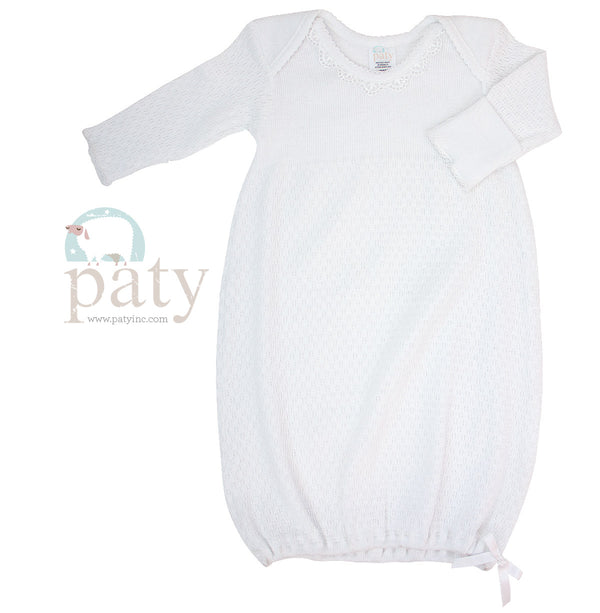 Crafted from a luxurious 50/50 blend paty knit fabric, this gown offers a harmonious combination of softness, breathability, and durability. The fabric's gentle embrace ensures a cozy and comforting experience for the wearer, making it suitable for any season or climate.